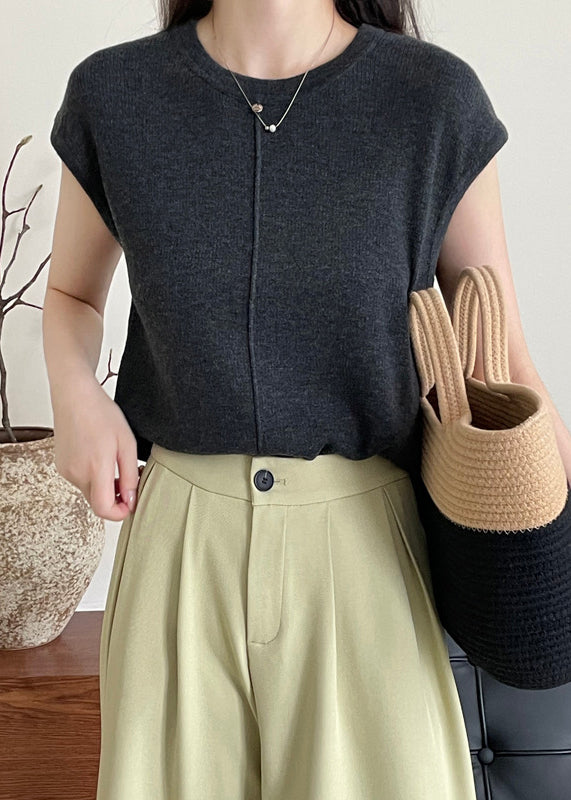 Handmade Light Camel O Neck Woolen Shirt Top Sleeveless WR009