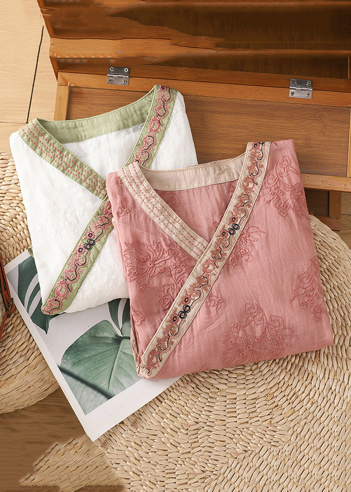 Indulge in our handcrafted White Embroidered Lace Up Cotton Shirts with exquisite Bracelet Sleeves. Each piece is meticulously handmade for the most luxurious and exclusive experience. Elevate your wardrobe with this stunning addition.
