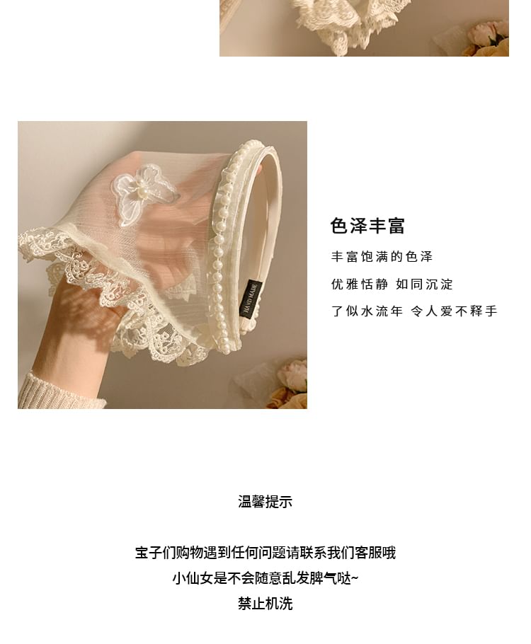 Headband Applique Butterfly Trim Lace