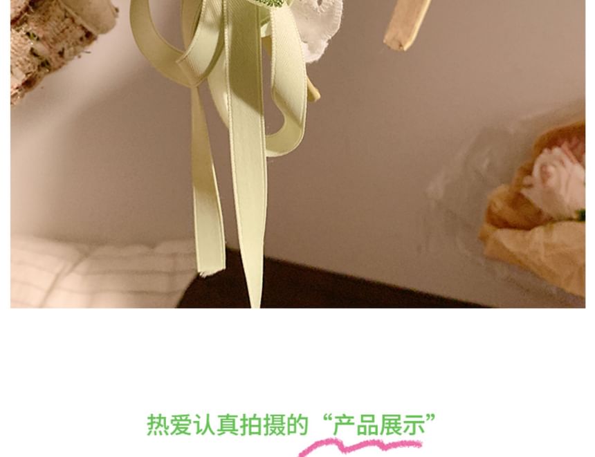 Cute Pink Crystal Pearl Tulle Floral Tassel Drop Earrings LL007