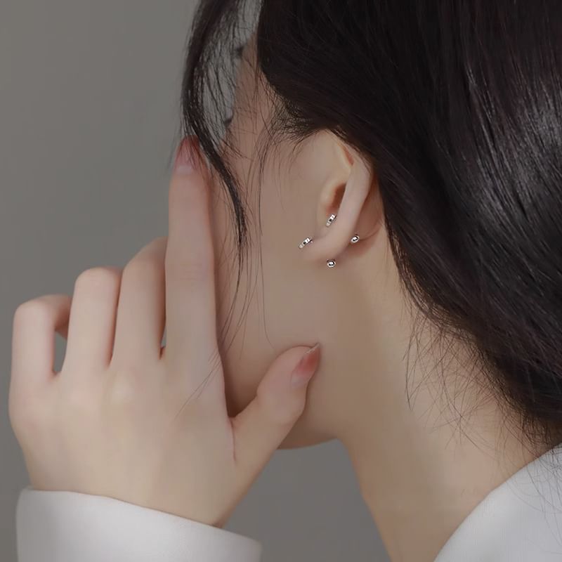 Heart Earring Rhinestone Asymmetrical Alloy Barbell