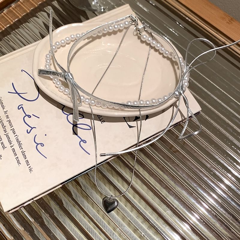 | Color: | Faux Pearl & Bow - Silver & White |
