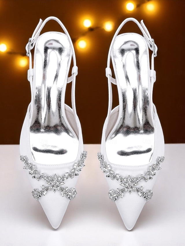 Gender: Women's, Category: Heels, Style: Elegant, Fashion, Sexy, Occasion: Party, Wedding, Toe Shape: Pointed Toe, Upper Materials: Satin, Lining Materials: Synthetic Leather, Outsole Materials: Rubber, Embellishment: Rhinestone, Season: Winter, Fall, Summer, Spring, Size Suggestion: standard size, select your usual size, Closure Type: Lace-up, Heel Height(inch): 1.77, Heel Type: Block Heel,