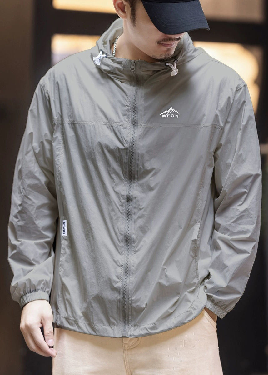 Plus Size Yellow Hooded Pockets Thin Ice Silk Mens UPF 50+ Coat Summer