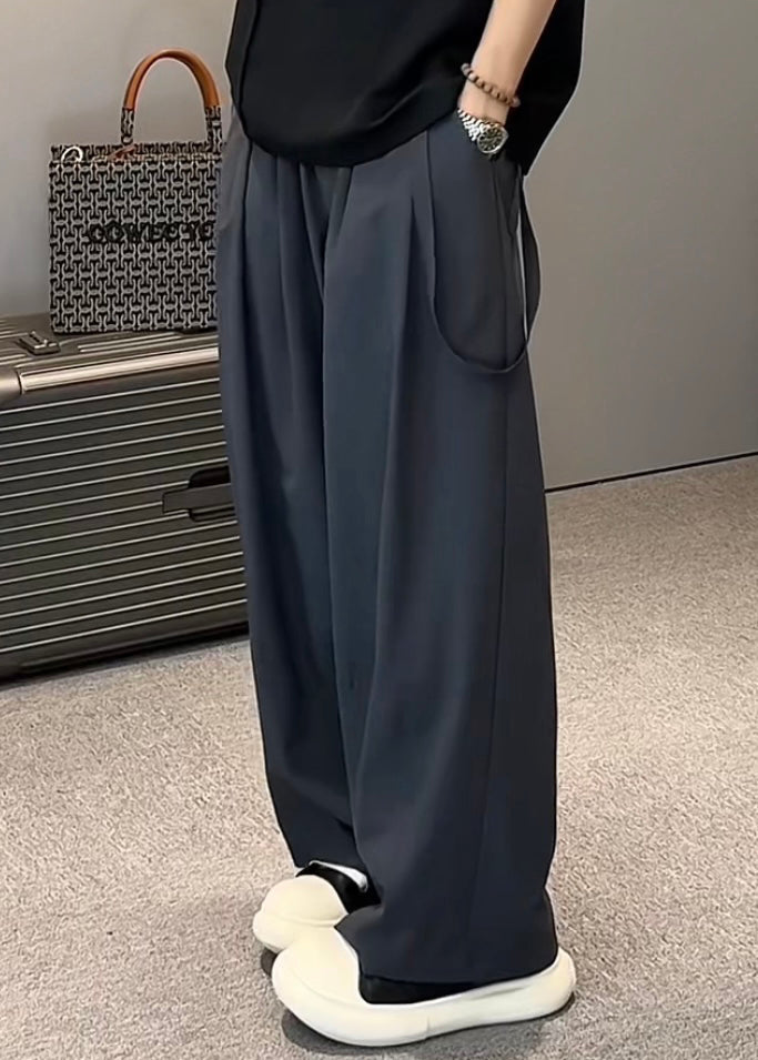 Original Khaki Pockets Elastic Waist Ice Silk Men Wide Leg Pants Summer