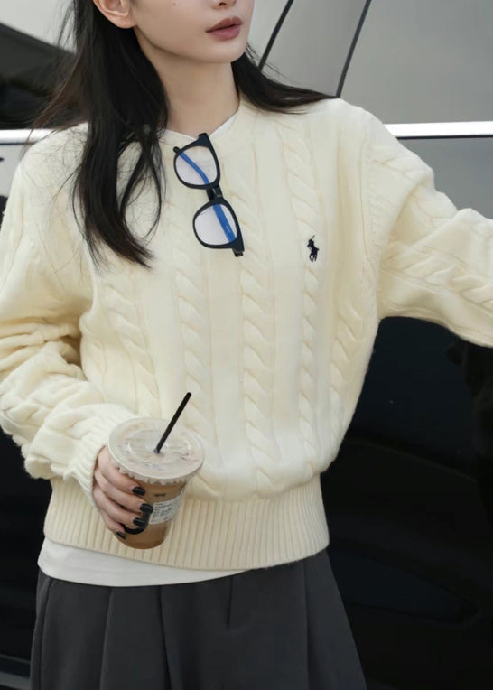 Italian Grey O Neck Cozy Warm Cable Knit Sweater Spring YY025