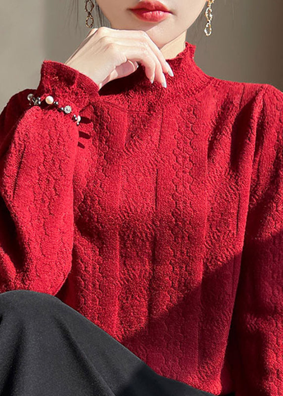 Wrap yourself in the luxury of our Jacquard Beige Turtleneck Cozy Solid Cotton Knitted Tops, perfect for the winter season.