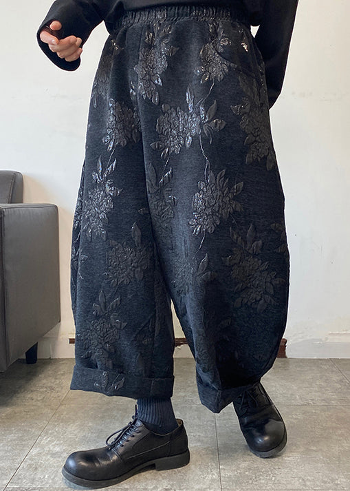 Jacquard Black Pockets Elastic Waist Men Crop Pants Spring RM026