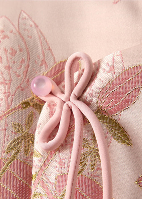 Indulge in the opulence of our Jacquard Pink Fur Collar Fuzzy Ball Patchwork Duck Down Down Coats, perfect for the winter season.