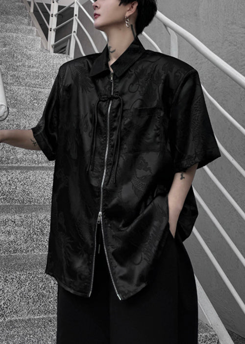 Jacquard White Peter Pan Collar Button Silk Men Shirts Summer YT061