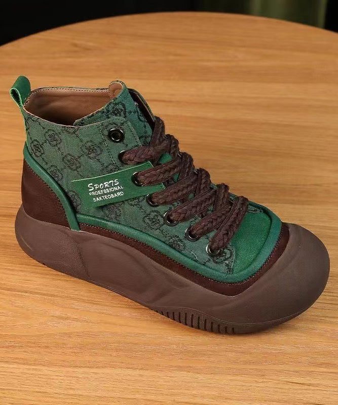 Khaki Casual Canvas Platform Flats Shoes Cross Strap XC1048