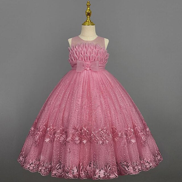 Gender: Girls', Age Group: Kids, Style: Sweet, Princess, Occasion: Performance, Wedding, Party, Kids Apparel: Dress, Flower Girl Dress, Fabric: Cotton, Pattern: Solid Colored, Sleeve Length: Sleeveless, Age: 3-12 Years, Season: Summer, Spring, Look After Me: Hand wash, Fit Type: Regular Fit, Dresses Type: A Line Dress, Pink Princess Dress, Flower Girl's Dress, Dress Length (cm): Maxi,