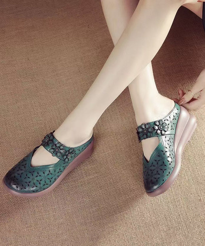 Leather Hollow Wedge Out Sandals Cowhide New Slide Splicing Red