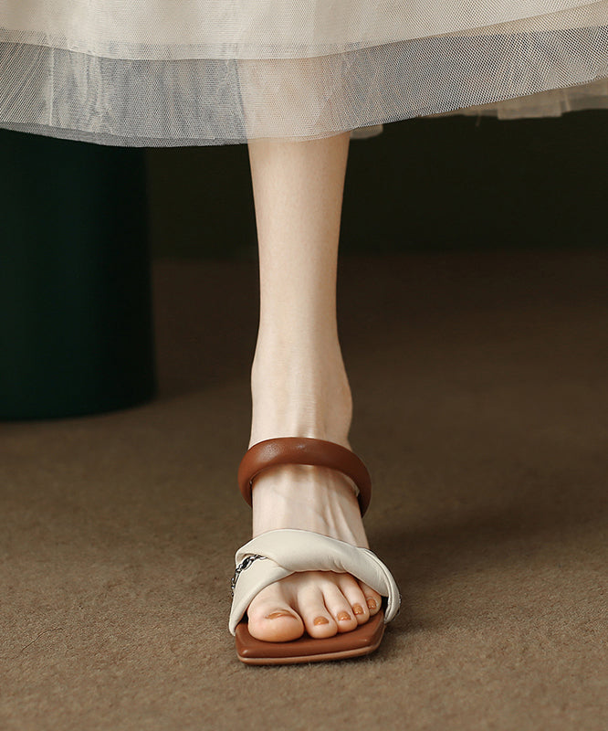 Leather Sandals Purple Fine Kitten Faux Splicing Slide Heels