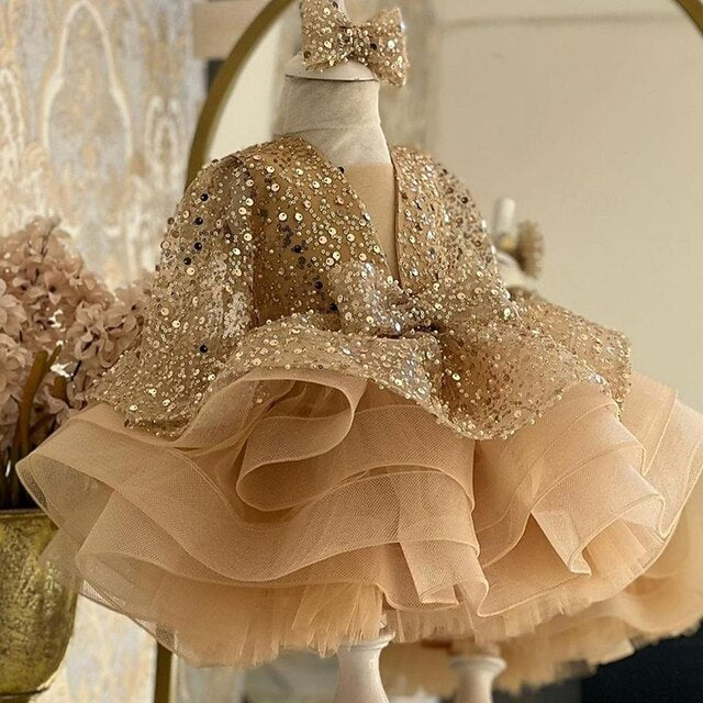 Gender: Girls', Age Group: Kids, Style: Sweet, Princess, Occasion: Performance, Wedding, Kids Apparel: Party Dress, Fabric: Mesh, Pattern: Solid Color, Sleeve Length: 3/4 Length Sleeve, Design: Mesh, Age: 2-12 Years, Season: Summer, Fall, Spring, Look After Me: Hand wash, Elasticity: Inelastic, Fit Type: Tailored Fit, Dresses Type: Sheath Dress, Tulle Dress, Flower Girl's Dress, Dress Length (cm): Mid-Calf, Neckline: Off Shoulder,
