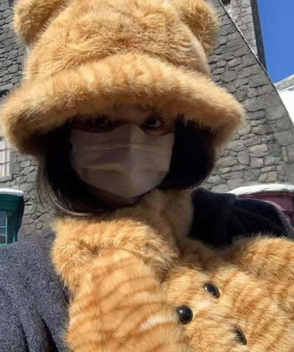 Leopard Print Cute Faux Fur Fisherman Hat Scarf Set RB050