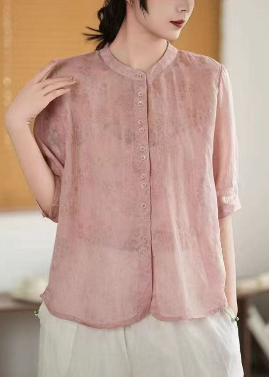 Art Green Single Breasted Print Linen Shirt Half Sleeve