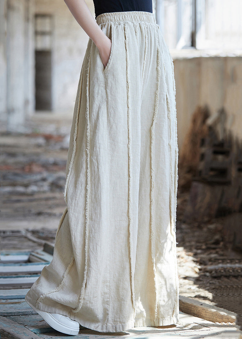 Linen Solid Pockets Linen Wide Leg Pants High Waist QE047