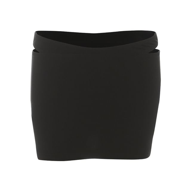 Long Sleeve Faux Fur Trim Crop Light Cardigan / Low Waist Mini Pencil Skirt