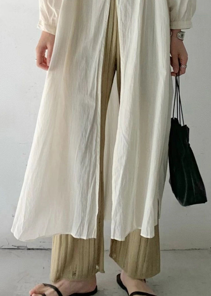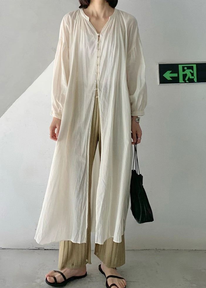 Loose Beige O-Neck Button Long UPF 50+ Coat Long Sleeve VB1049