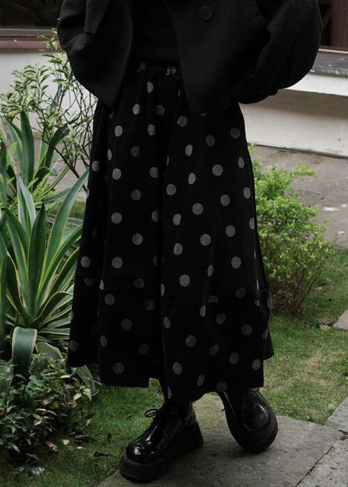 Indulge in the luxurious refinement of our Loose Black Dot Elastic Waist Patchwork Corduroy Skirts, perfect for the winter season.