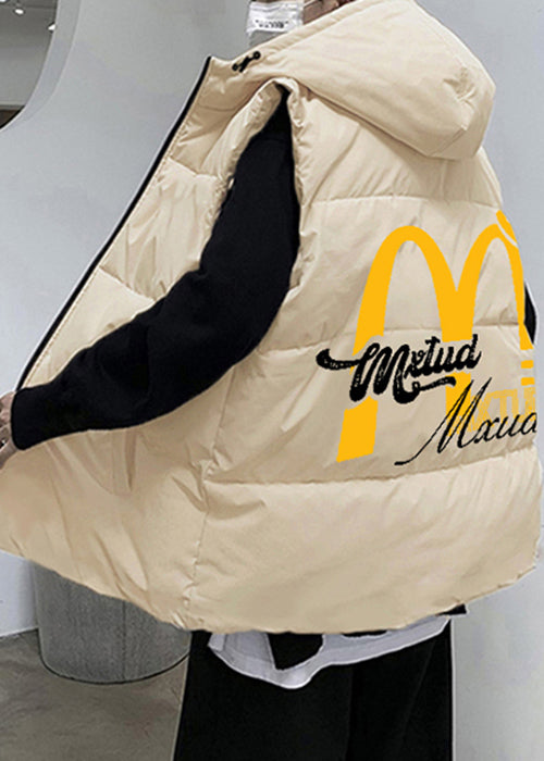 Loose Black Hooded Zippered Print Cotton Filled Men Waistcoat Sleeveless EQ030