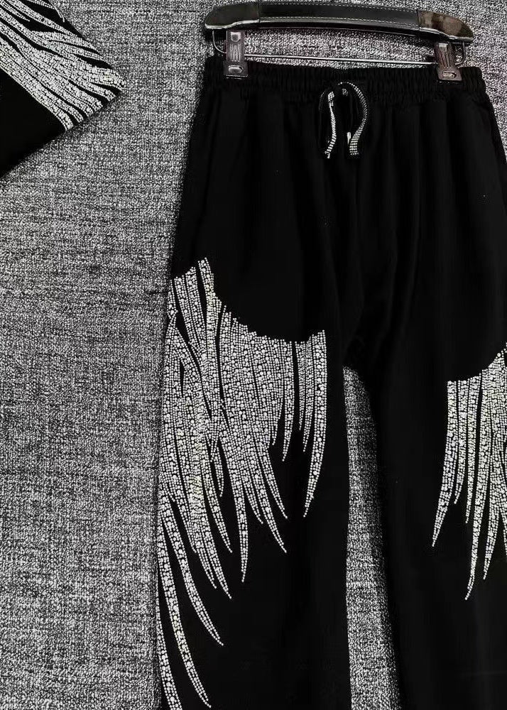 Loose Black Zircon Elastic Waist Cotton Crop Pants Fall RK032