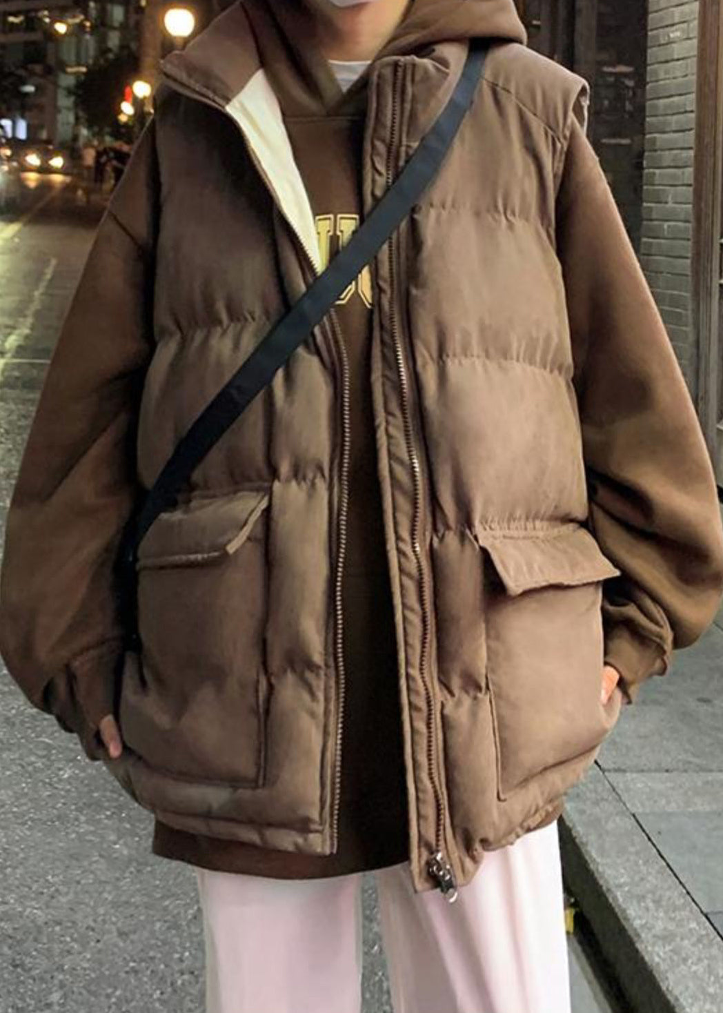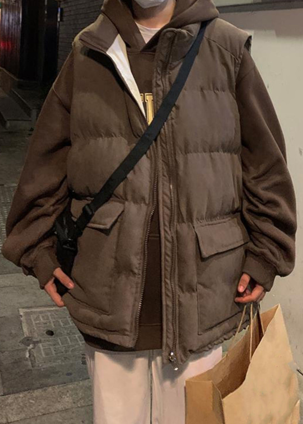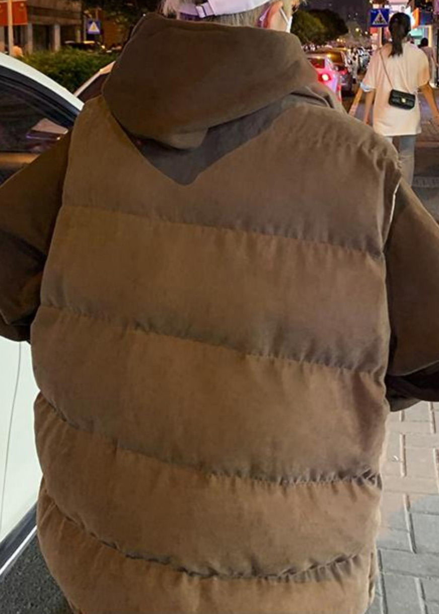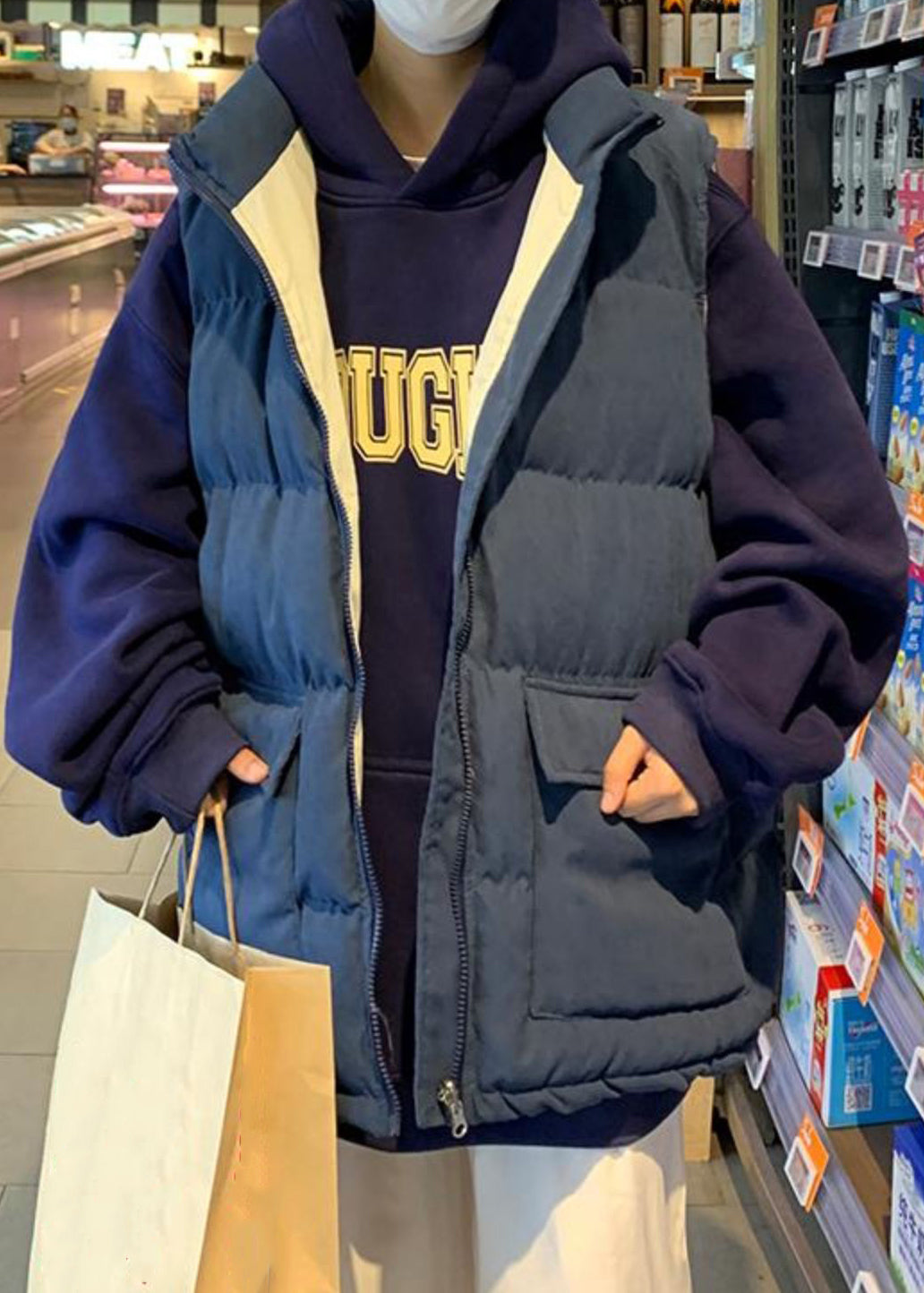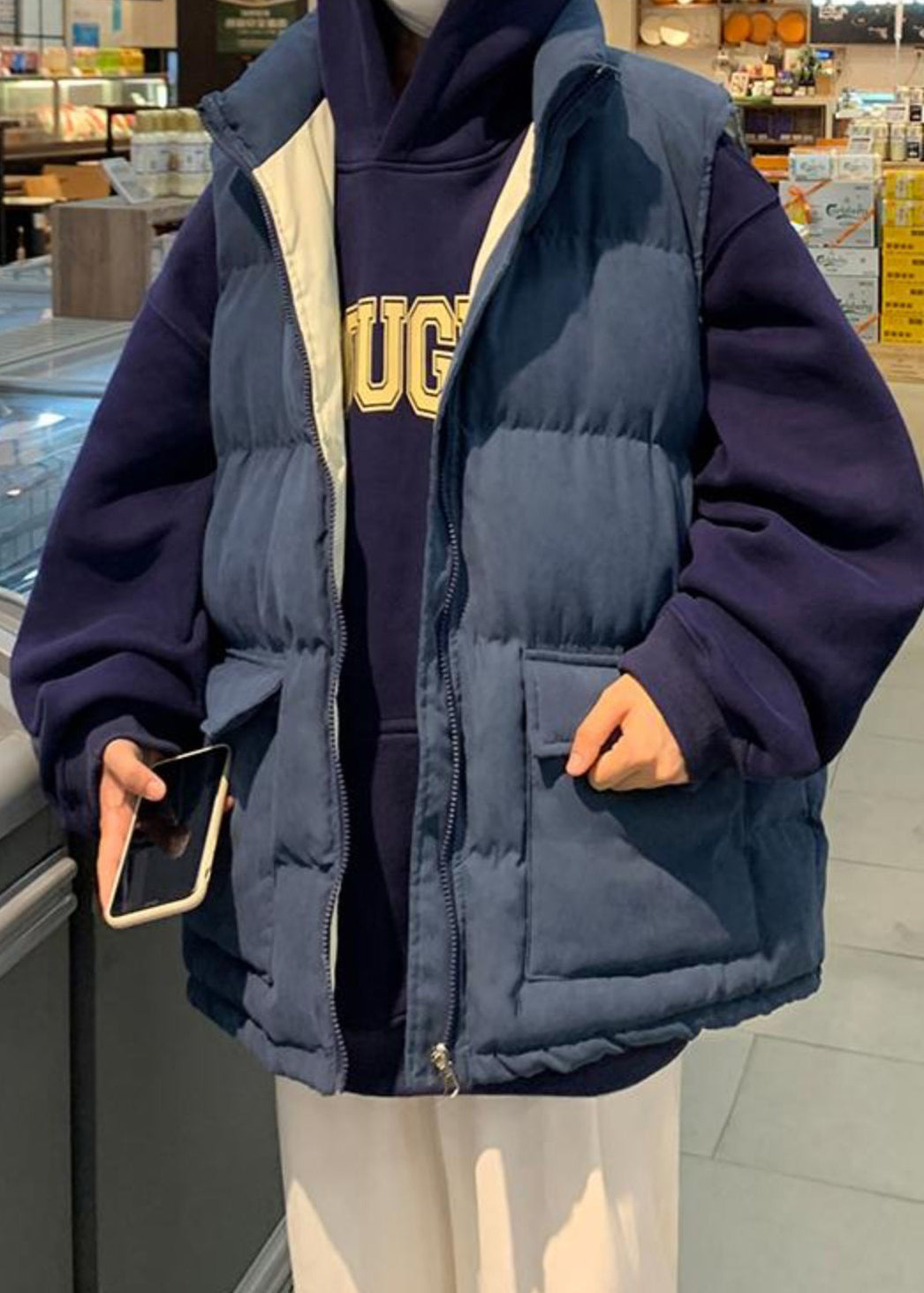 Loose Blue Zip Up Pockets Cotton Filled Mens Waistcoat Sleeveless EQ036