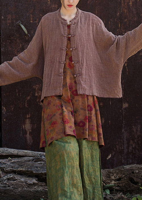 Loose Coffee O Neck Button Cotton Coats Batwing Sleeve GH1029