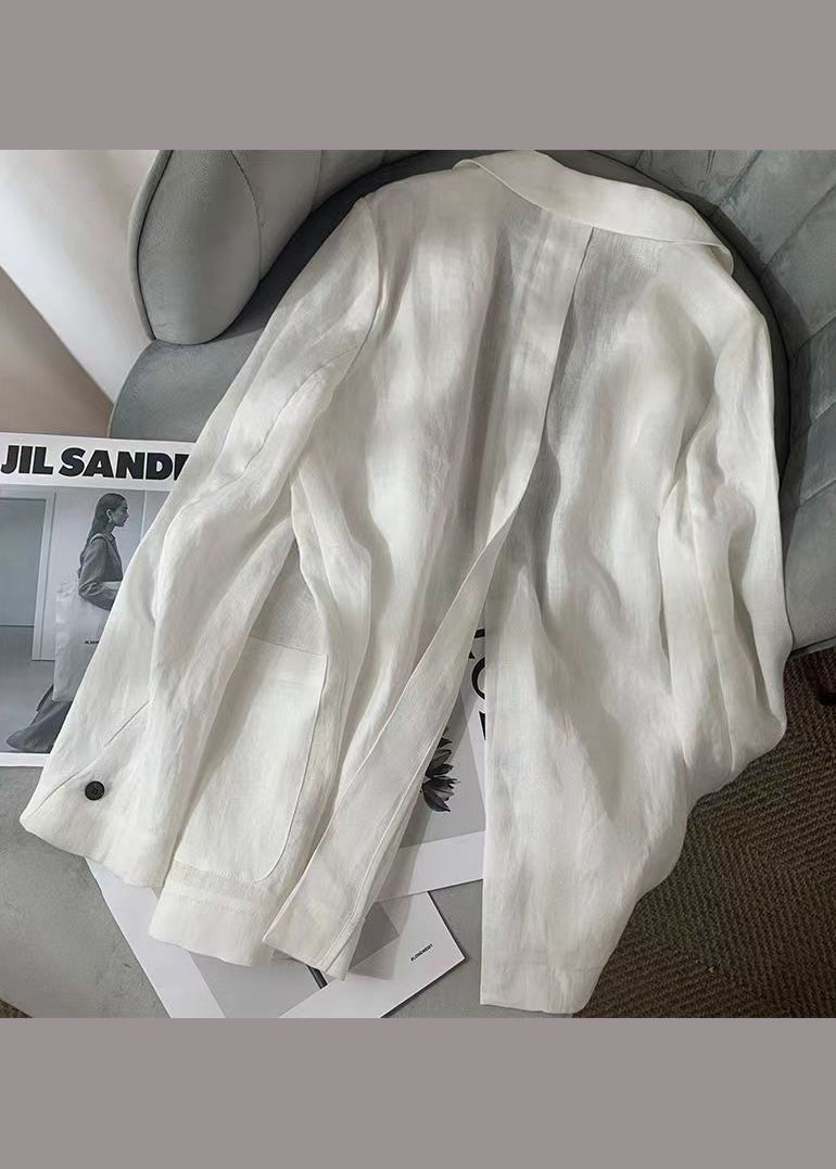 Elevate your wardrobe with our luxurious Loose Green Linen Thin Coat, featuring a Peter Pan collar and convenient pockets. Perfect for spring and summer, this coat exudes elegance and sophistication.