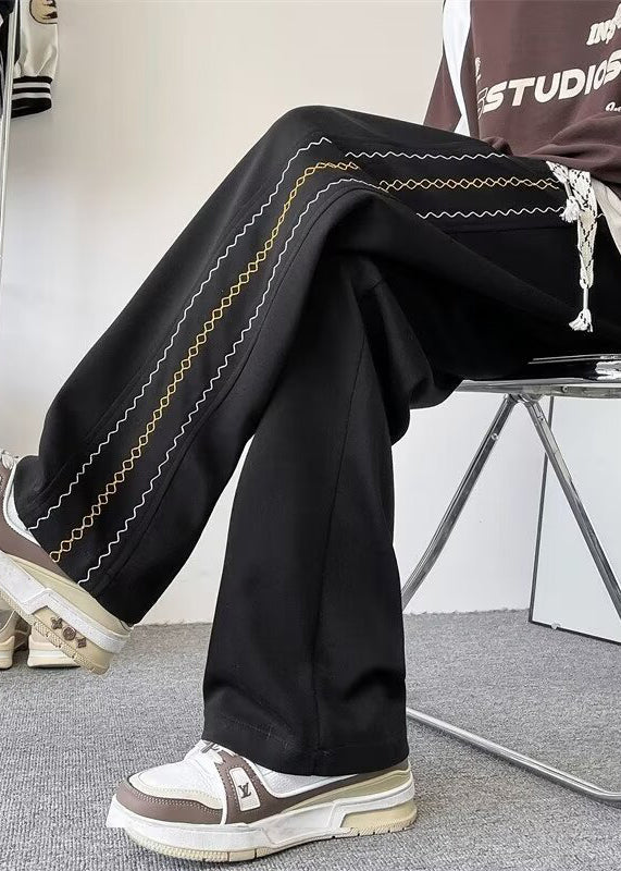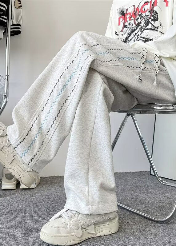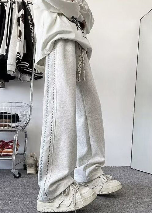 Loose Grey Pockets Elastic Waist Cotton Men Pants Fall WA053