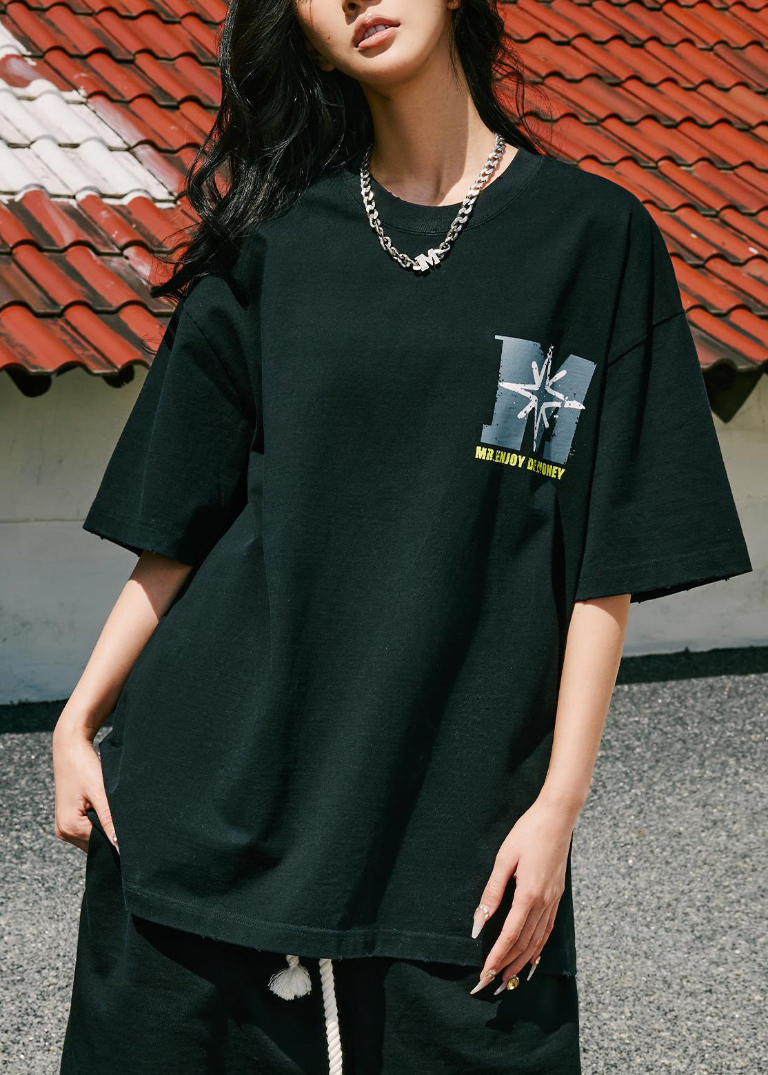Loose Grey Print Solid Cotton Men T Shirt Summer LK068