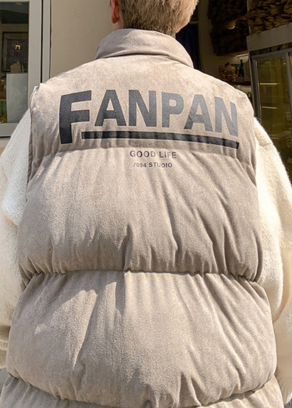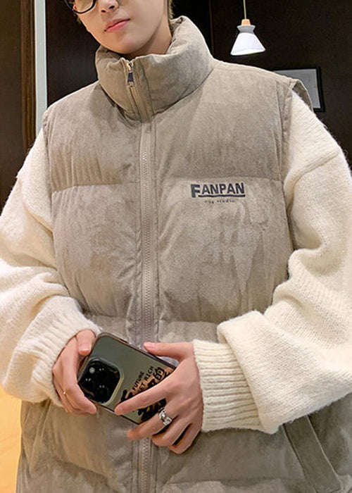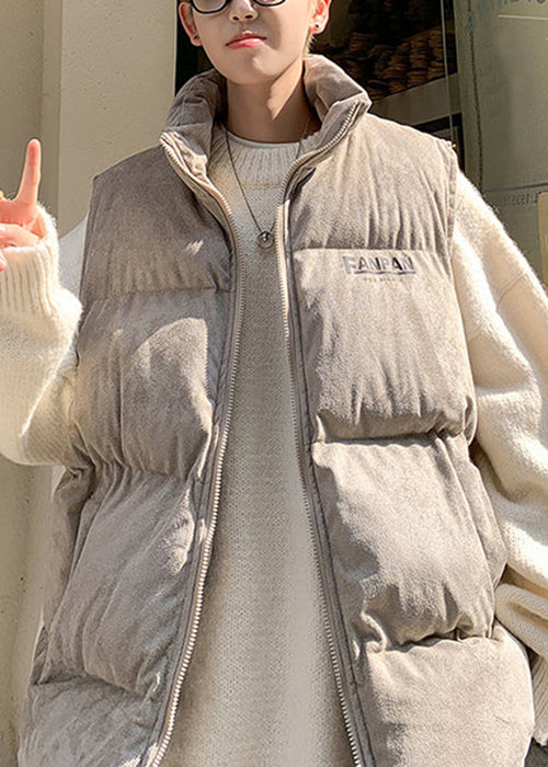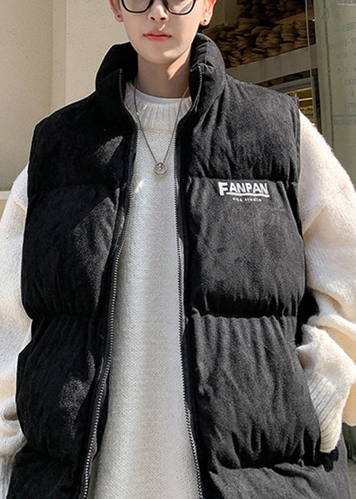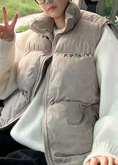 Loose Grey Stand Collar Letter Cotton Filled Mens Waistcoat Winter RN003