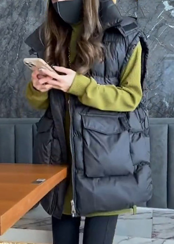 Loose Khaki Drawstring Pockets Cotton Filled Waistcoat Sleeveless YW014