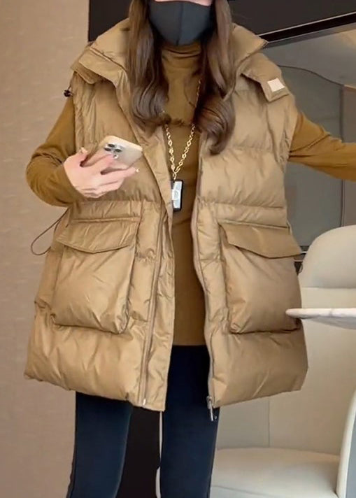 Experience effortless style and luxury with the Loose Khaki Drawstring Pockets Cotton Filled Waistcoat Sleeveless YW014. This exclusive piece showcases a sleek design with a sophisticated drawstring for added flair. Crafted from premium cotton and filled with comfort, it is the perfect addition to your wardrobe for a timeless and elegant look.