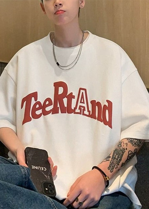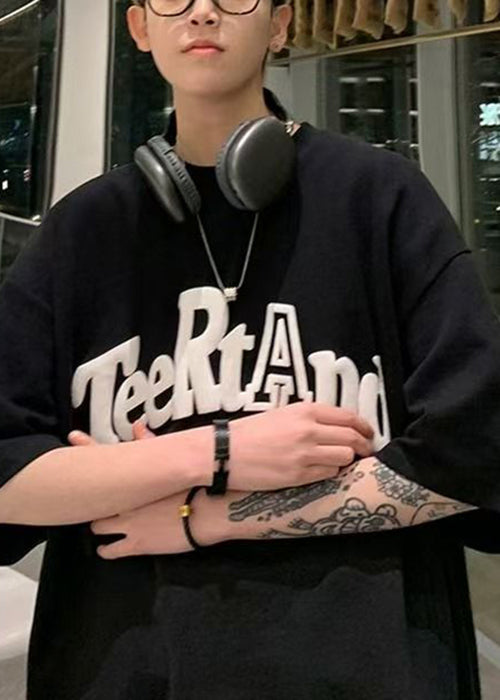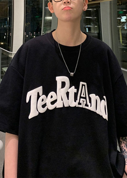 Loose Black O Neck Letter Solid Cotton T Shirt Men Half Sleeve
