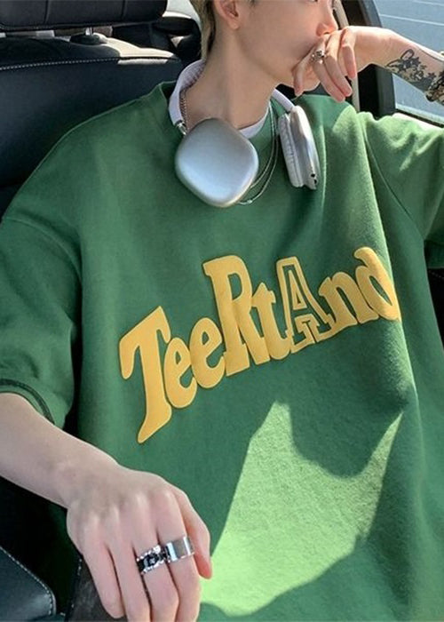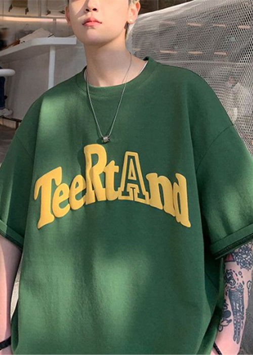 Loose O T Black Cotton Neck Solid Shirt Letter Men Half Sleeve