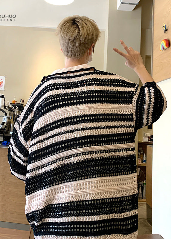 Experience the luxurious and exclusive feel of our premium Loose Rainbow Hollow Out Striped Knit Polo Shirts, perfect for the sophisticated gentleman. Elevate your summer wardrobe with these tasteful and elegant men's apparel pieces. Embrace the world of art and fashion with our intricately designed and sensory-oriented polo shirts.