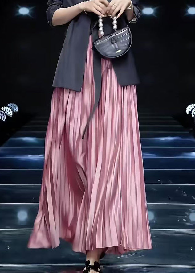 Loose Pink Wrinkled Solid Cotton Skirts Spring