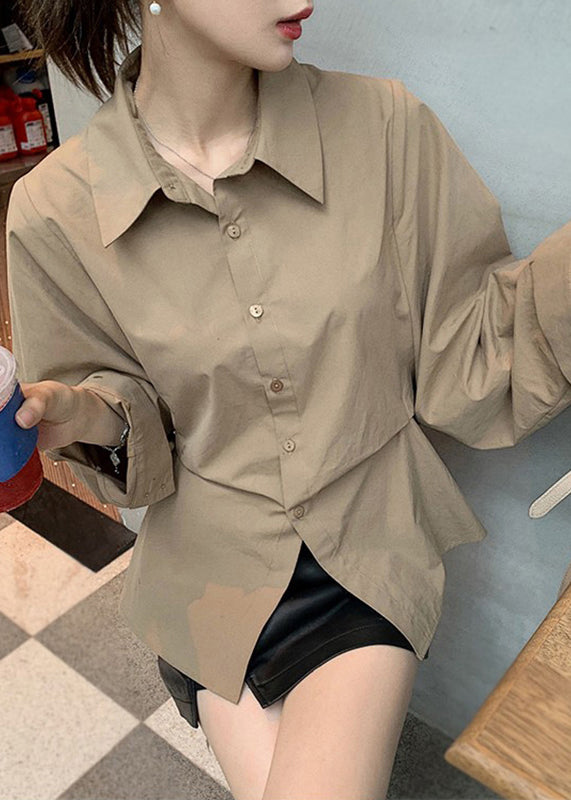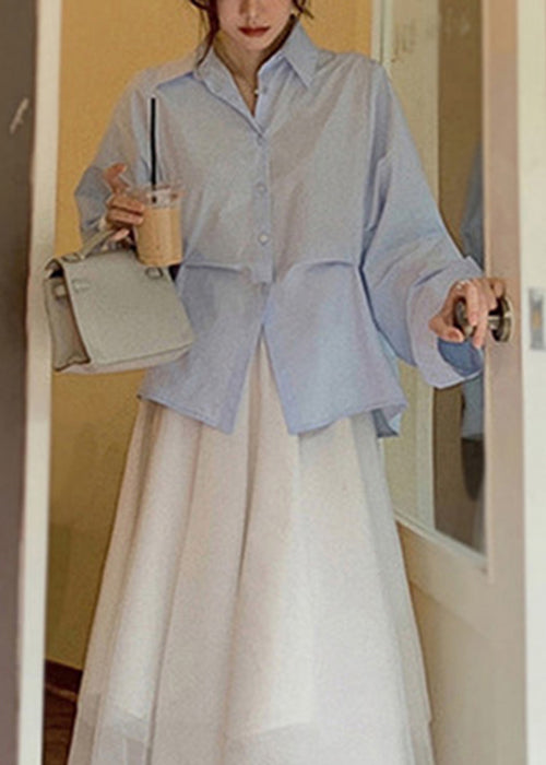 Indulge in the luxurious fall fashion of our Loose White Peter Pan Collar Button Patchwork Cotton Blouse, crafted from high-quality materials for a tastefully elegant look.