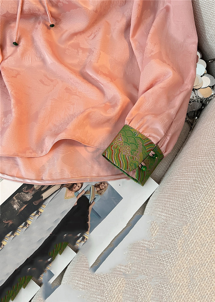 Elevate your wardrobe with our luxurious loose white silk shirt for fall. The stand collar and button details add a touch of sophistication, while the loose fit provides comfort and versatility. Perfect for transitioning from day to night, this is a must-have for the fashion-forward individual.