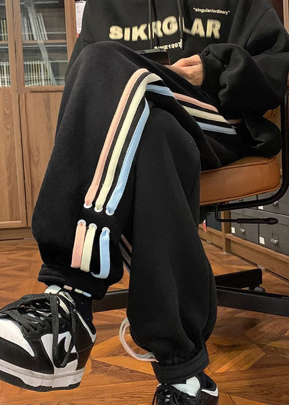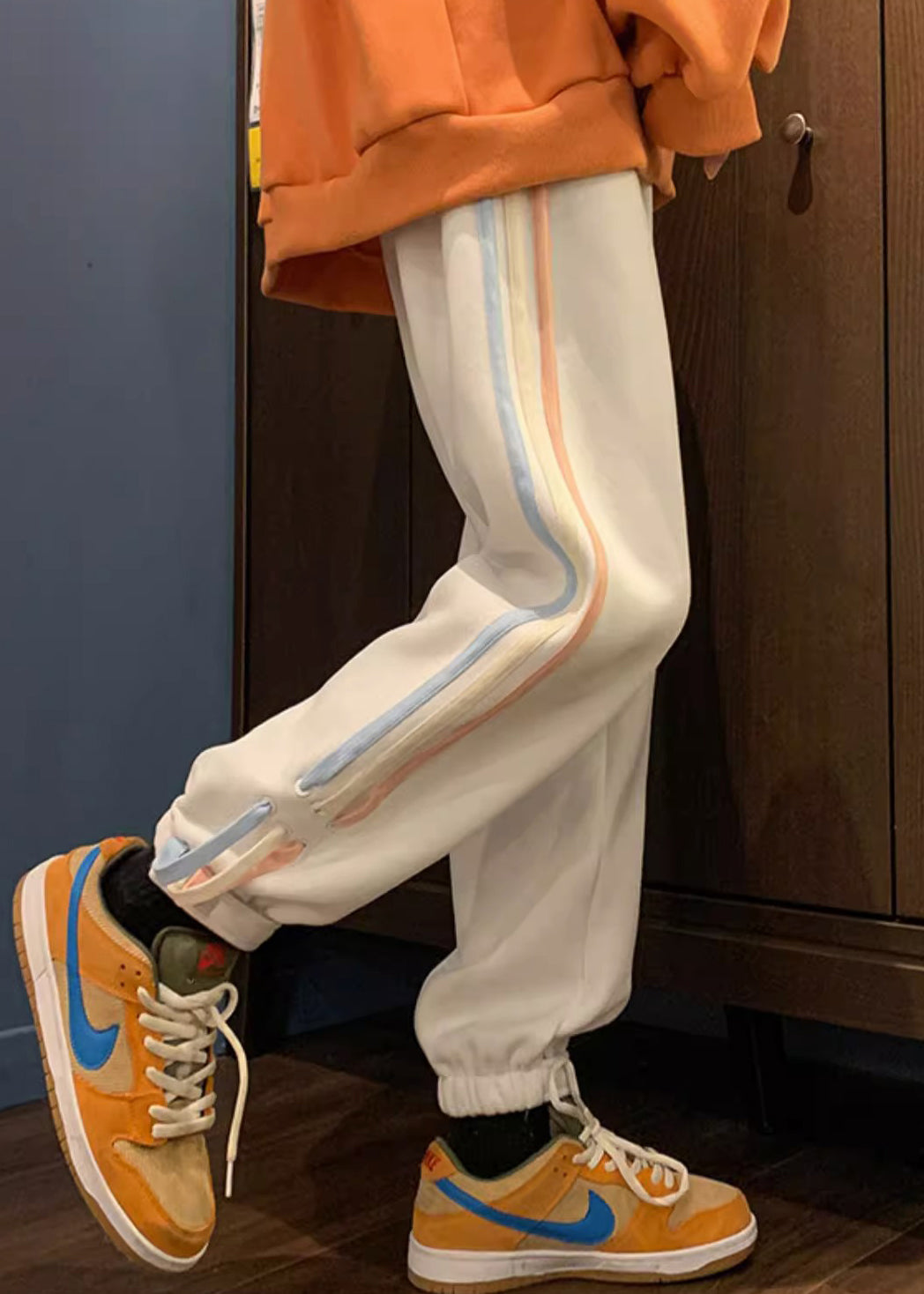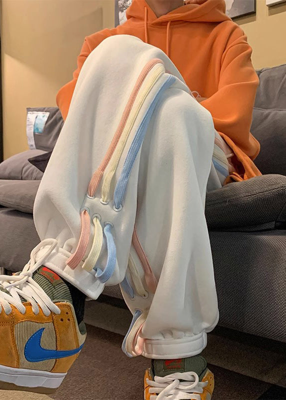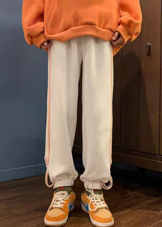 Loose White Striped Pockets High Waist Mens Pants Winter WA036
