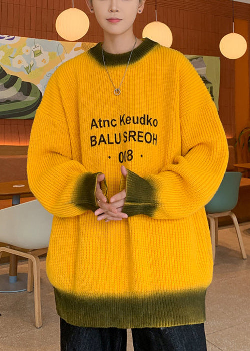 Loose Yellow Tie Dye Letter Knit Men Sweaters Winter RC026