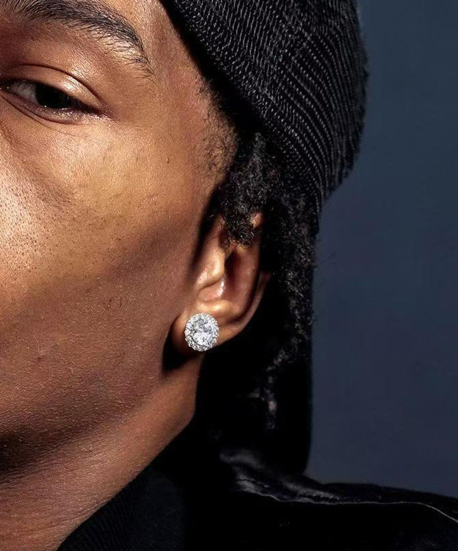 Chic White Sterling Silver Zircon Men Stud Earrings