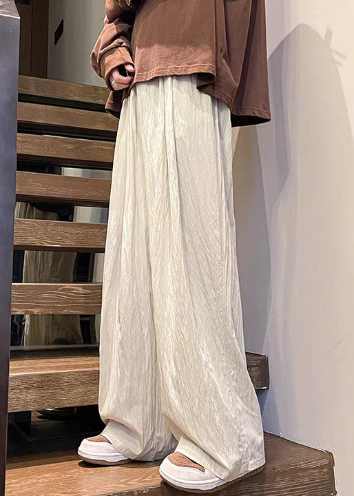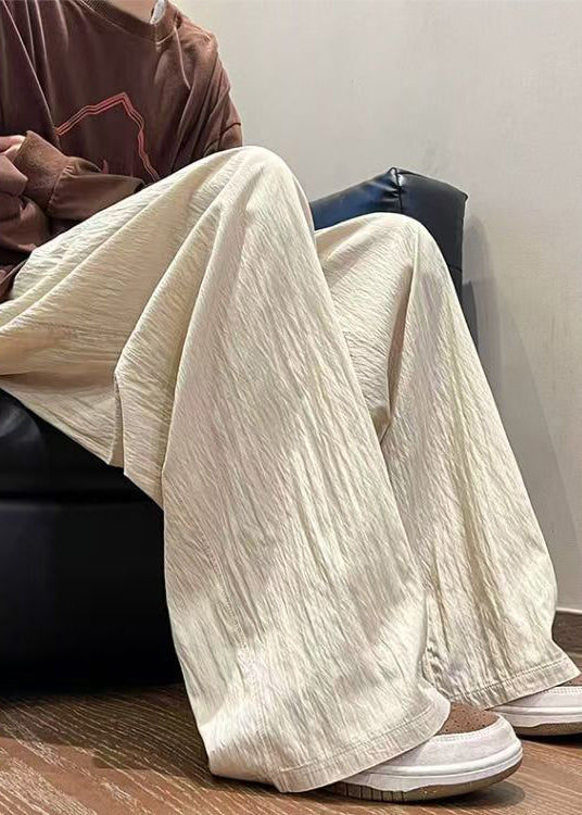 Mens Casual Pants Solid Pockets Summer Silk Ice Apricot