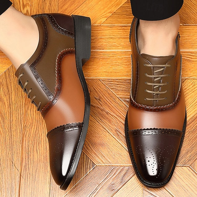 Men's Brown and Black Two-Tone Brogue Shoes – Faux
