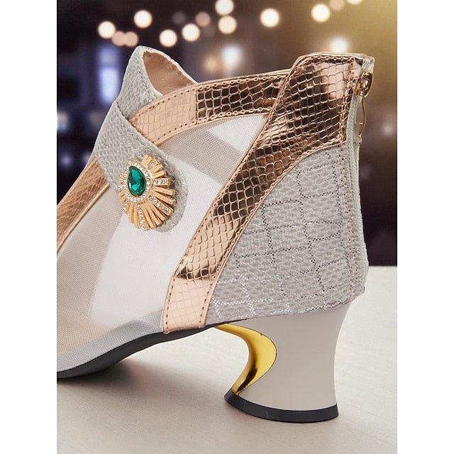 Gender: Women's, Category: Boots, Style: Fashion, Vacation, Sexy, Type: Booties Ankle Boots, Occasion: Party, Toe Shape: Pointed Toe, Upper Materials: Mesh, Lining Materials: Synthetic Leather, Outsole Materials: Rubber, Embellishment: Rhinestone, Season: Winter, Fall, Summer, Spring, Size Suggestion: standard size, select your usual size, Closure Type: Zipper, Heel Height(inch): 2.36, Heel Type: Chunky Heel,