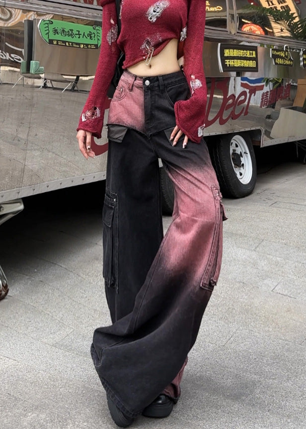 Modern Gradient Color Oversized With Pockets Denim Pants Spring YF018