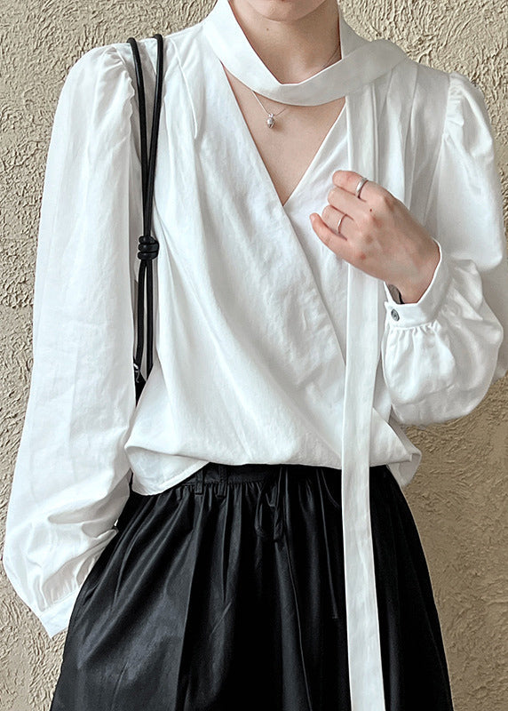 Modern Navy V Neck Ribbon Shirt Fall QE062