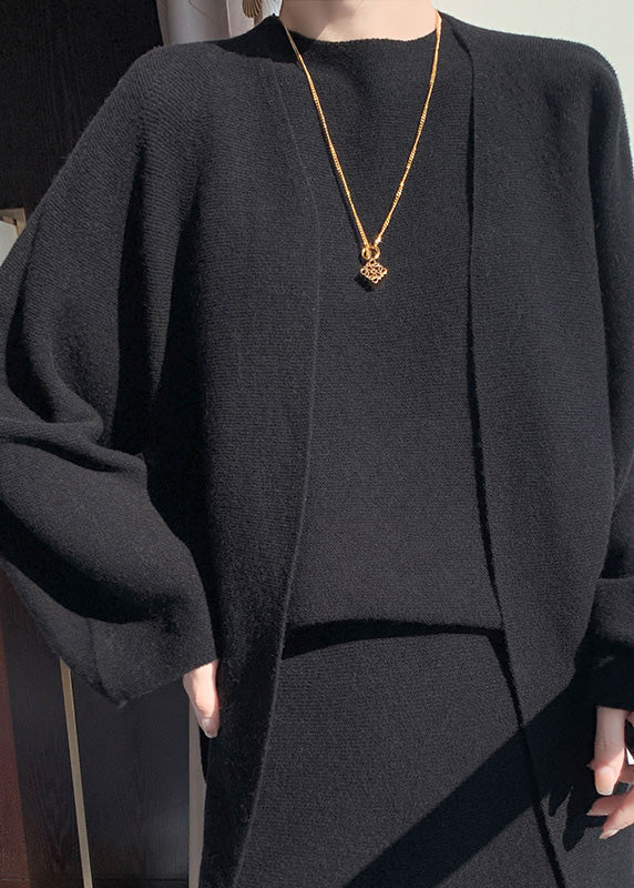 Natural Light Camel V Neck Woolen Cardigan Waistcoat And Wide Leg Pants Three Piece Set Fall WV030